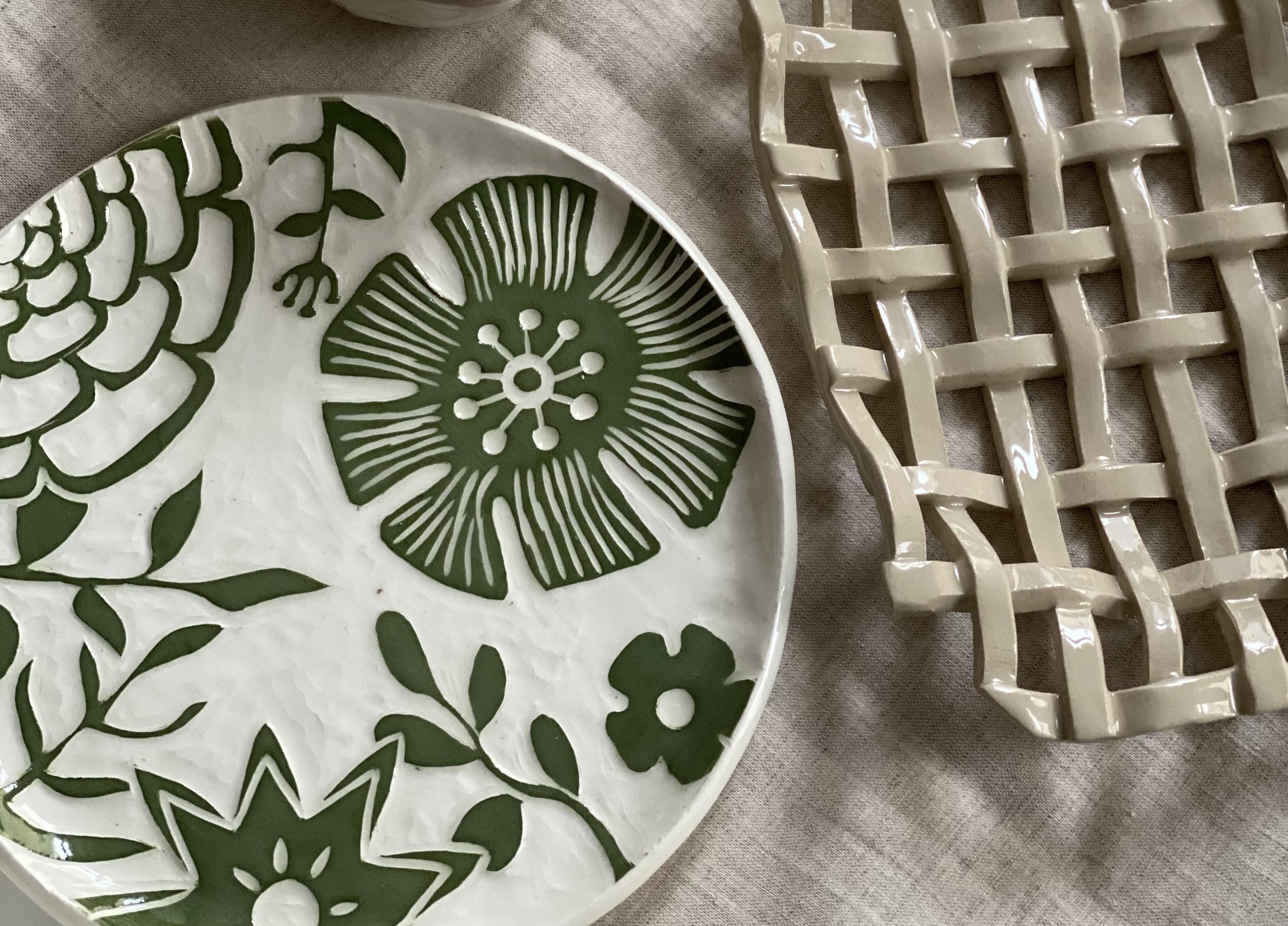 На мастер-классе вы сделаете 2 тарелки произвольной формы и нанесете на них слой цветного ангоба, а затем с помощью инструментов процарапаете рисунок.